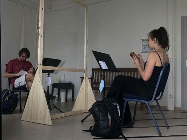 Die praktischen Prüfungen der Schauspielstudierenden konnten in diesem Jahr lediglich aus der Präsentation von drei Monologen bestehen. Diese wurden in Anwesenheit der Prüfungskommission und unter Beachtung strenger Sicherheits- und Hygieneauflagen gezeigt.